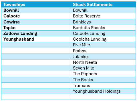 The Ponde – Younghusband planning areas, along the southern boundary of the LGA, consist of the following housing areas.