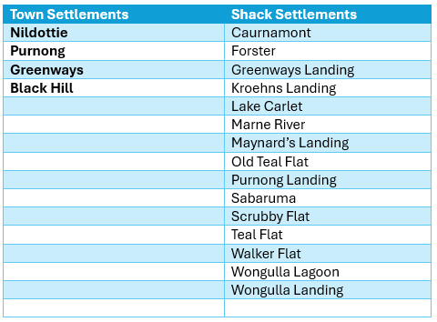 In total, fifteen shack settlement areas are located within the planning area, each contributing to the unique riverside character and lifestyle along this stretch of the Murray.